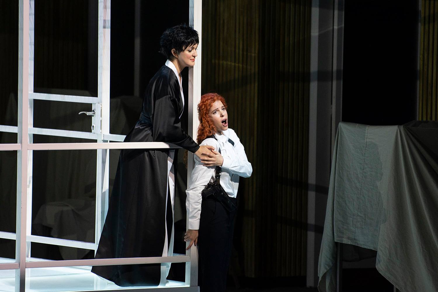 За дирижерским пультом в «Монтекии и Капулетти» стоит Дан Эттингер. И снова – восклицательный знак. Прекрасный мужский хор и инструментальные соло. Оркестр был полностью слитен с происходящим на сцене, а сама постановка режиссера Ханана Снира увлекательна тем, что сделана с явным намерением привлечь в Оперу молодую аудиторию: немного в духе фильмов-вестернов, много экшна, стрельбы, движения, динамики, некой сумятицы и, если употреблять молодежный слэнг – «разборок». Но все это отнюдь не мешает, а только подчеркивает красоту Джульетты, красоту музыки, романтику любовных отношений. Да-да, про это уже много раз сказали и написали – между двумя девушками, точнее подростками (помните, что шекспировской Джульете еще не исполнилось четырнадцати?) – но ведь партия Ромео изначально была написана Беллини для женского голоса, и в наше время модных гендерных неопределенностей мало что кого еще удивляет.