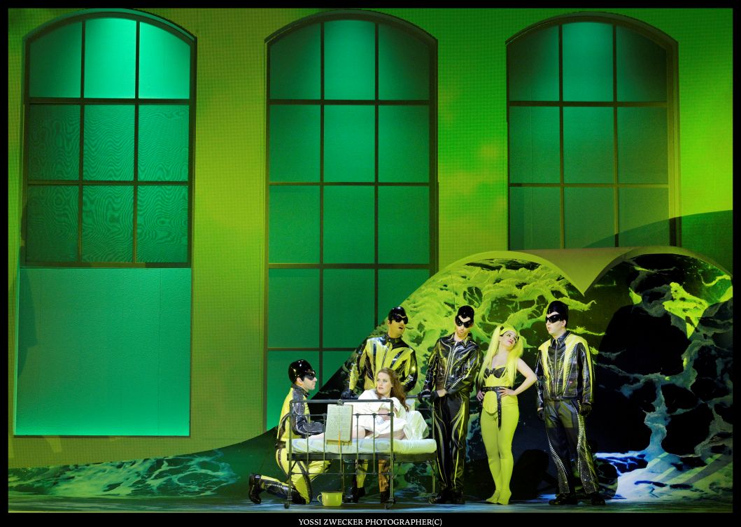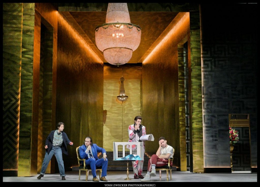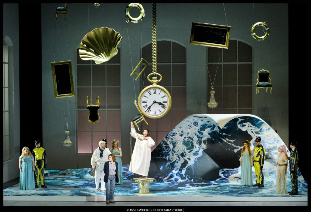 Надо сказать, что «Ариадна на Наксосе» ставилась в Израильской Опере еще в 2007-м году и тогда ей тоже дирижировал маэстро Ашер Фиш. Так что забегая вперед – спойлер: после антракта перед вторым действием учитель танцев и учитель музыки, приглашая на сцену дирижера – самого что ни на есть реального, то есть маэстро Ашера Фиша, предлагают импровизировать, что, собственно говоря, и происходит после антракта с Ариадной на острове Наксос и нагрянувшими к ней в гости персонажами комедии из пролога.