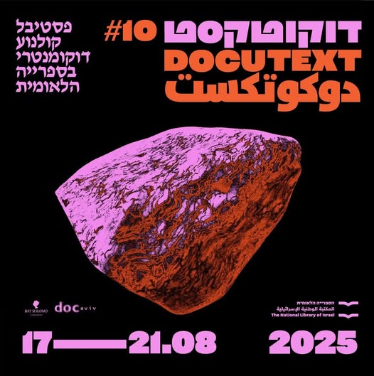Отмечая десятилетие своего существования, фестиваль Docu.Text, учреждённый Национальной библиотекой Израиля при поддержке фестиваля DocAviv, вновь собирает зрителей и создателей документального кино в пространстве, где документальность становится не только формой повествования, но и способом задать вопросы, на которые трудно дать прямые ответы  – о памяти, об идентичности, о культуре, о боли, и о попытках сохранить достоинство в меняющемся и тревожном мире.