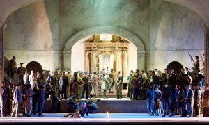 Нет, во-первых, мой любимый никогда не подводящий хор Израильской Оперы под управлением Асафа Бенрафа. Замыслом греческого режиссёра-постановщика он временами становился настоящим греческим хором, одним из главных персонажей действия.