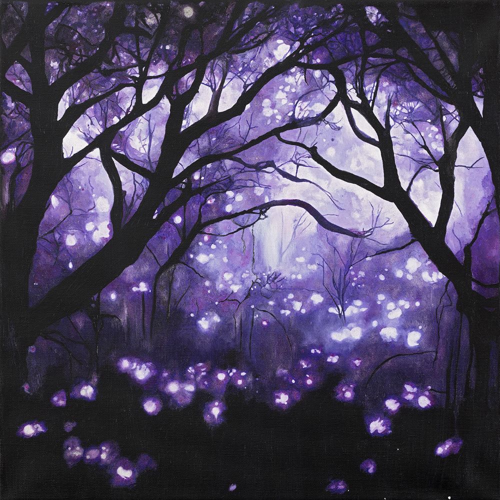 Всё-таки в первую очередь речь идет о выставке и о выставке хорошей, выставке о романтической, соблазнительной и обманчивой красоте без лица и выражения, о ее притягательности и опасности. Back Mind – будто мы смотрим на картины из зазеркалья. Анат Бецер месяцами создавала серию этих картин – женские головы с обнаженными шеями и спинами, за которыми мы – вуайеристы – наблюдаем сзади, а сами женщины безлики, но не безидентичны, и явно соблазнительны. Женщины изображены на фоне темного магического леса (этот лес появляется и на отдельных полотнах – как декорация к самой пьесе), извилины тропинок, ветви и листья деревьев переплетаются с прядями волос анонимных лесных удин, почти что растворяющихся в природе. Локоны как декоративная топография. Видимыми остаются только волосы этих загадочных женщин, а их сложные прически могут быть отражением лабиринта эмоций и подсознания. Можно только предполагать, каковы же лица по ту сторону холста; лица, скрытые художницей за мантиями и вуалями причесок, за рентгеном затылков – а может то просто мутации, обманчивые маски, скрывающие истинную драму и продуманное нарушение порядка вещей?