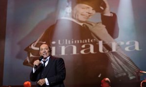По содержанию программа “Анка поет Синатру” напоминало неторопливое перелистывание с друзьями семейного альбома: вот артист еще совсем молод, но уже ужасно знаменит, вот он с культовыми личностями второй половины XX столетия – с Фрэнком Синатрой, Элвисом Пресли, Эдом Селиваном, четверкой “Битлз”, Мухаммедом Али, Майклом Джексоном, Селин Дион, с президентами США и прочими, вот – со своими пятью дочерьми от первого брака и 14-летним сыном от второго (и, кстати, не последнего) – он тоже прибыл в Израиль вместе со своим знаменитым родителем и в конце концерта вышел на сцену поприветствовать папу.