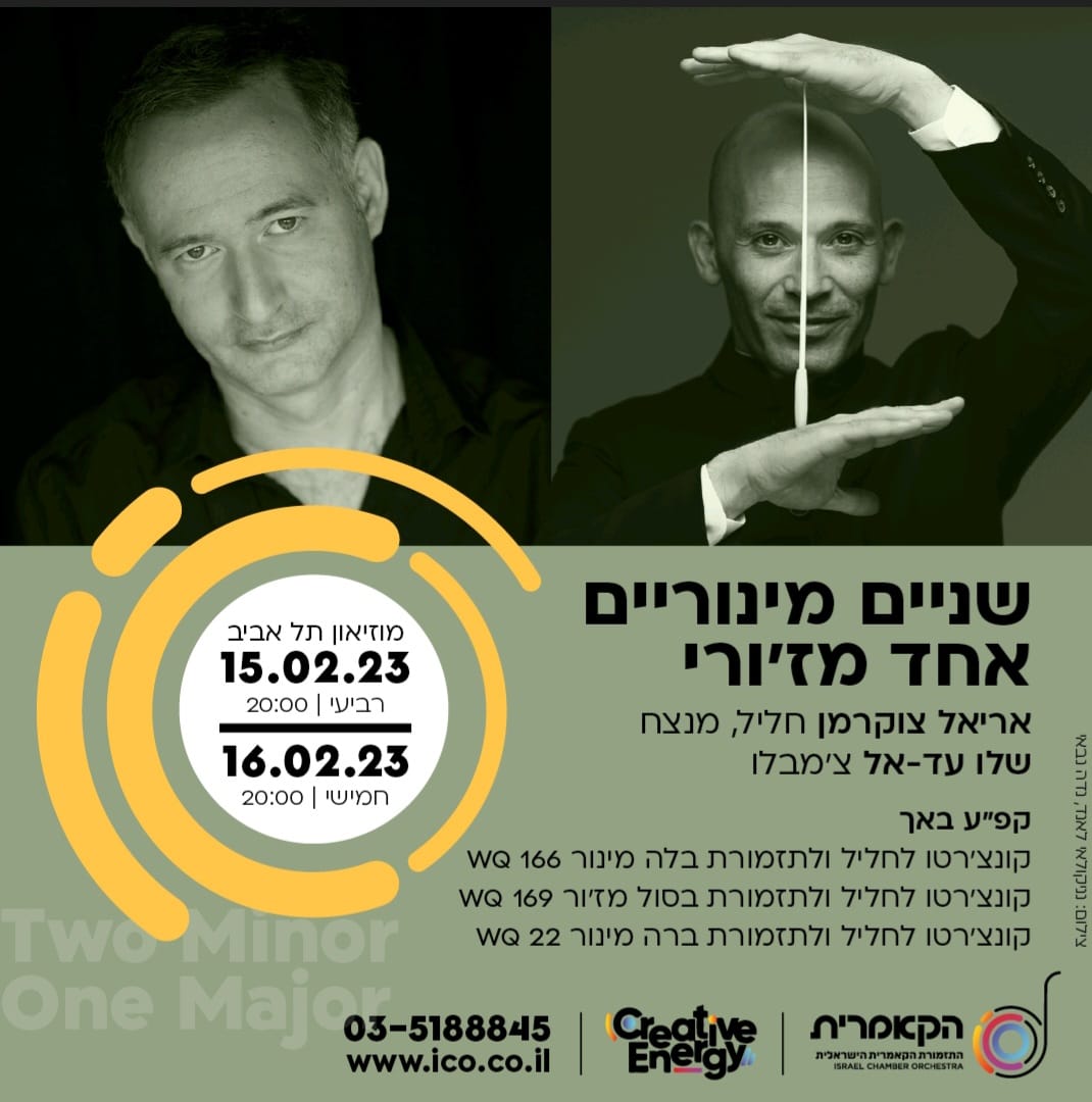 Маэстро Ариэль Цукерман https://arielzuckermann.com/ – флейтист-виртуоз и один из самых востребованных дирижеров молодого поколения в Израиле, главный дирижер и музыкальный руководитель Израильского Камерного Оркестра, начиная с сезона 2015/16 гг.. Учился дирижированию в Королевской музыкальной академии в Стокгольме и в Мюнхенском университете музыки и исполнительских искусств. В 2004-2013 годах он был музыкальным руководителем известного Грузинского Камерного Оркестра Ингольштадта (Германия). Он дирижировал оркестром Познаньской филармонии, Оркестром Гайдна в Больцано, Оркестром Норландской оперы, выступал на Фестивале Телави в Грузии, Фестивале Марвао в Португалии, а также с «Новым японским оркестром» и выдающейся грузинской пианисткой Элисо Вирсаладзе в Японии. Цукерман начал свою музыкальную карьеру как флейтист, занимал призовые места на международных конкурсах.