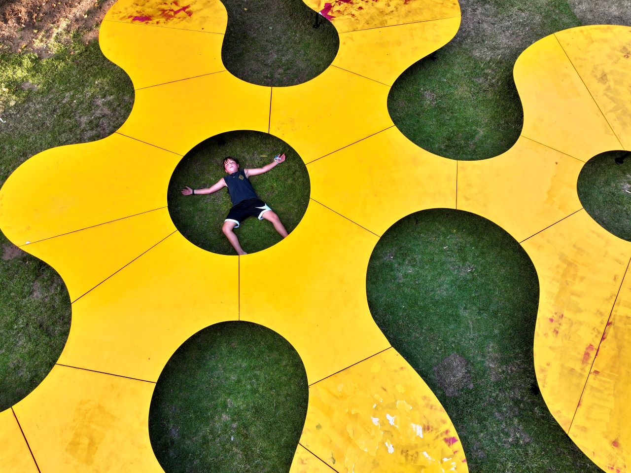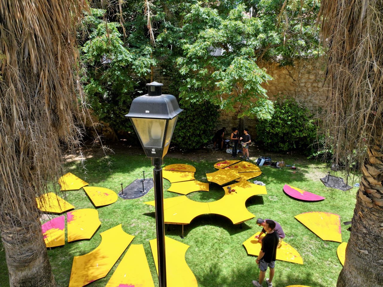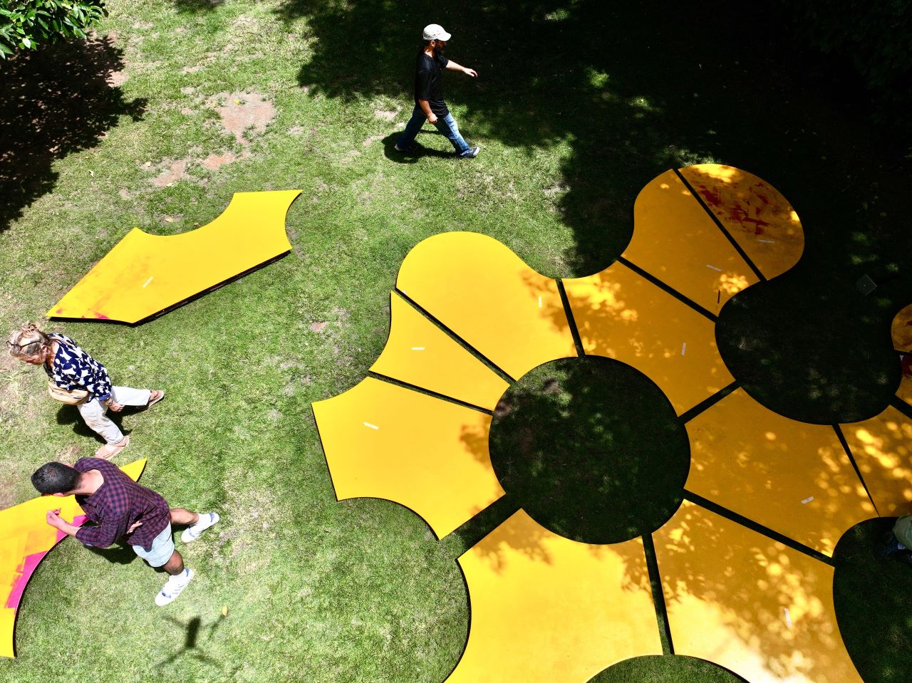 «Острова» – это ландшафтная скульптора, установленная на лужайке Центра Сюзан Далаль – скульптура, реагирующую на ситуацию тем, что ее розовые острова желтеют.