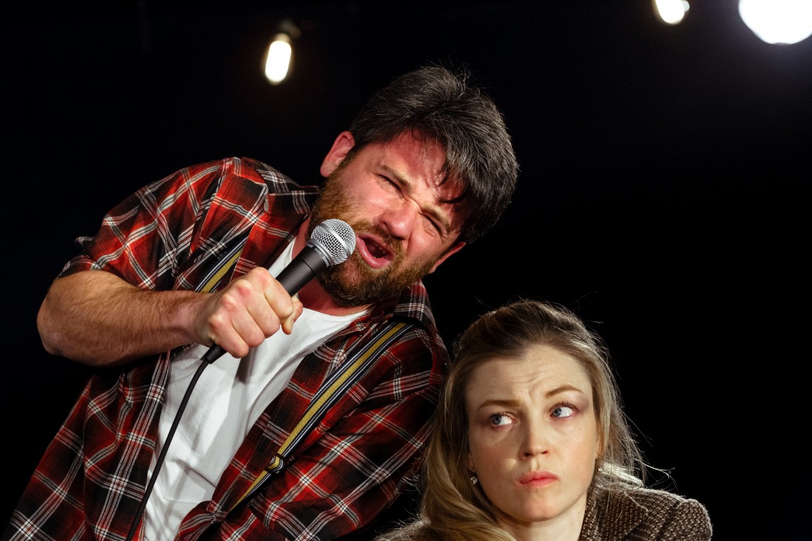 Сцена из спектакля «История медведей панда, рассказанная саксофонистом, у которого есть подружка во Франкфурте». Давид Зисельсон и Наталья Гантман. © Mark Tso