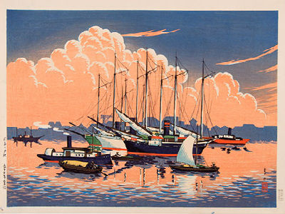 Интеграция новых западных понятий, таких как перспектива и реализм, привело к появлению нового направления в японской гравюре, названного «Син-Ханга» (новые гравюры) и получившее широкое распространение в первые тридцать лет 20-го в. Реалистичное представление или фотографическое изображение ландшафта в западном смысле представляло собой нечто новое для Японии. Таким образом, эти гравюры отмечают переход японских гравюр от традиционных к модернистским. Тем не менее, гравюры производились традиционным методом — художник рисовал картину, резчик изготавливал деревянные формы и печатник печатал работы, которые после этого маркировались профессиональным издателем.