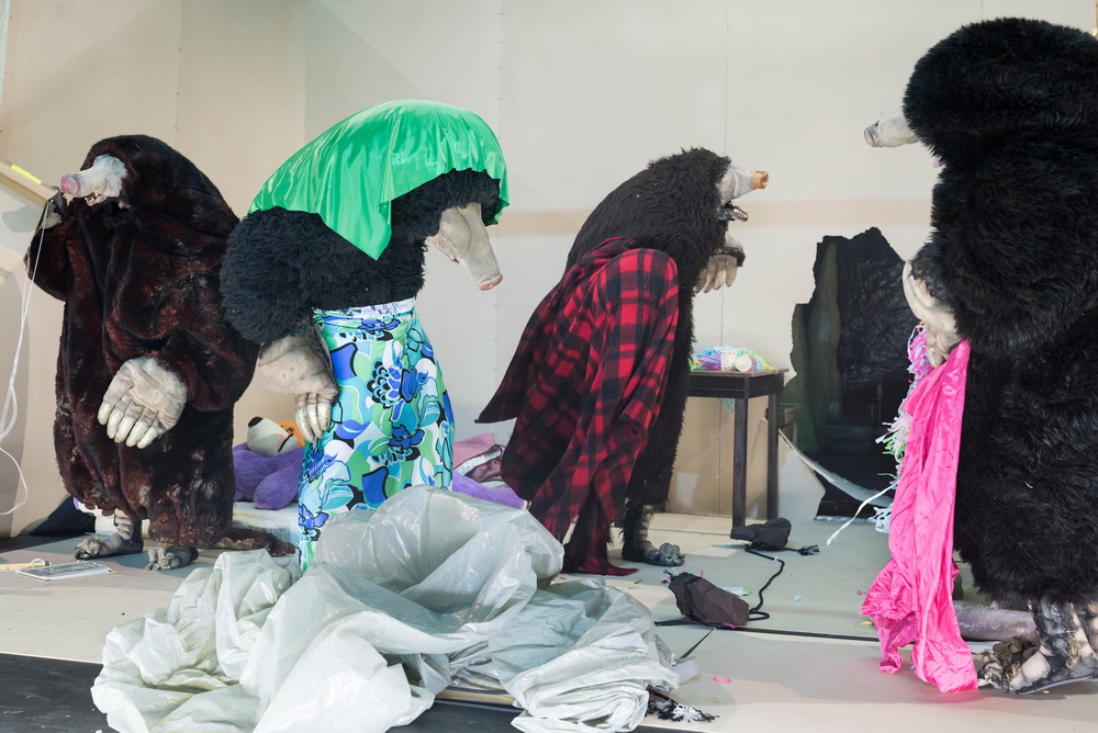 А вот что они, собственно, делают днем? Воюют с кем-то? Устраивают вечеринки? Занимаются музыкой? Любят рисовать? Грустят ли они иногда? Радуются ли, когда на свет появляется новый кротенок? Представление «Послеполуденный отдых кротов» знакомит детей с новой породой гигантских кротов, которые живут под землей и ищут друзей. Они слепы, но прекрасно ориентируются в своей пестрой норе: ломают и строят, играют и танцуют, в общем, наслаждаются жизнью.