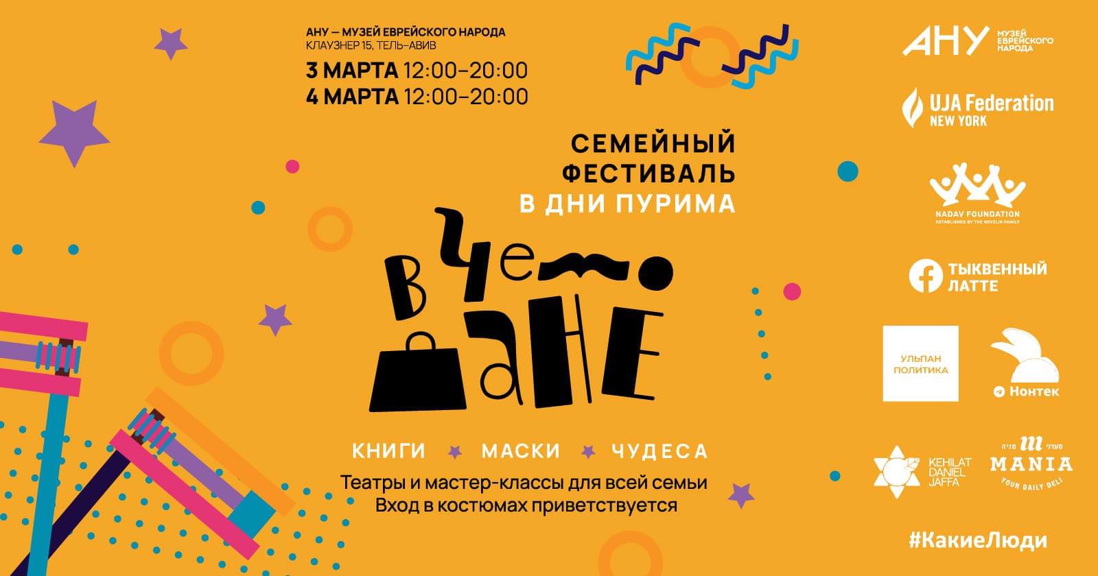 Уже стало доброй традицией отмечать Пурим в уютном пространстве АНУ – Музея еврейского народа, который на два дня станет домом для фестиваля и его гостей.