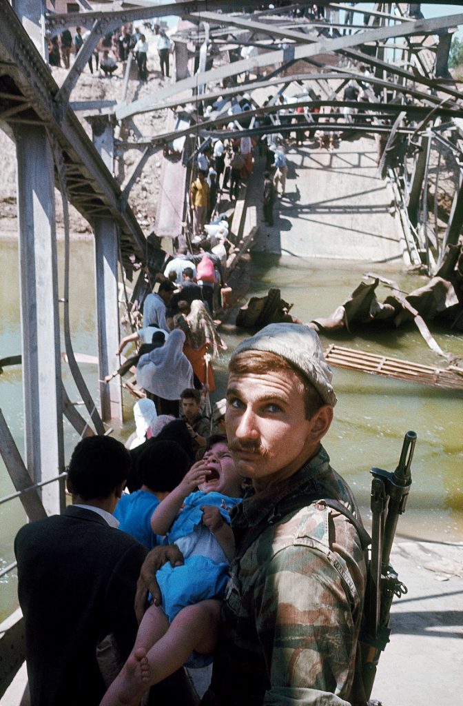 – Вот, например, фотография – меня на ней заинтересовал израильский солдат, который держит палестинского ребенка. Фотография сделана у моста Алленби у границы с Иорданией в 1967 году. Недавно мне этот солдат позвонил, и сказал, что все эти годы ждал, когда он сможет увидеть этот снимок. Он запомнил на всю жизнь и эту историю, и Рубингера. Была на выставке и внучка президента Бен Цви, которая узнала своего деда на снимке, где тот смотрит футбол. Конечно, она была очень взволнована.