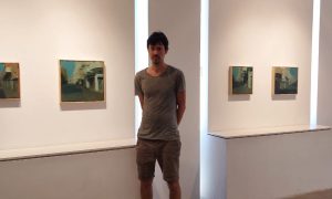Подобная серия пейзажных миниатюр была представлена два года назад на ярмарке «Свежая краска», и куплена – обратите внимание – сразу и целиком. Мне работы Идо Маркуса нравятся очень давно – еще со времен учебных выставок колледжа «Бейт-Берл» – «Мидраша», который Идо закончил в 2008 году, после чего поучился в Нью-Йорке в School of Visual Arts, поездил с выставками по всему миру – от Нью-Йорка до Гонконга – вернулся в Хайфу, где живет, преподает, творит и курирует выставки в галерее «Ха-Агаф». Он ценит традиции и ценит эксперимент. Ищет новое под влиянием других и влияет сам. И говорит так: «Я люблю рисунок, живопись и сочетание нескольких медиа, нескольких техник в одном пространстве. Я люблю, когда в хламе и мусоре обнаруживается причудливая, эксцентричная красота»