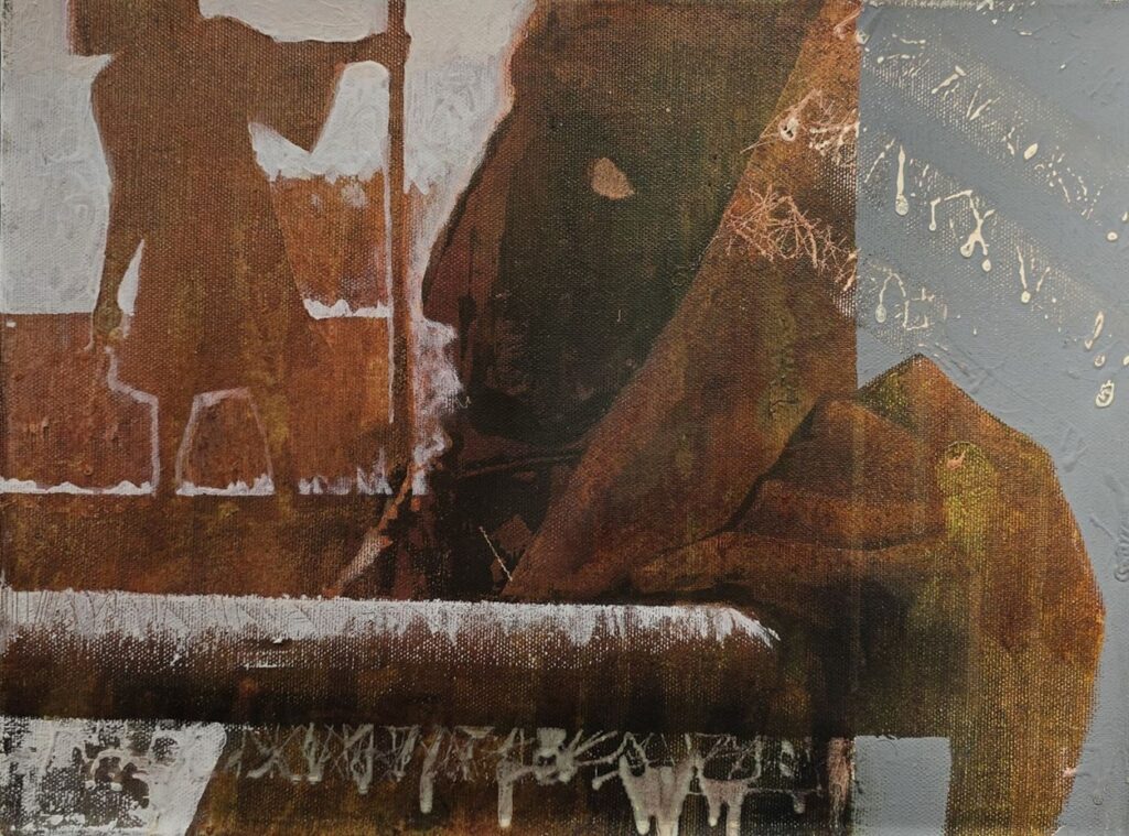 В рамках этой мировоззренческой системы координат и работает Шмуэль Шелест, причем работает очень деликатно и вдумчиво. Часть картин создана в прошлые годы – это элементы пейзажей, силуэтов, букв. Они сложились в серию, и художник объясняет свой подход, советуя избегать точых определений: «все наши слова тут не точны и только снижали бы смысл. Даже в почти уже конкретных сюжетах, где «чтение» более уместно, обозначения были бы узкими.» Интересно, что работы в этой серии построены как композиции эмоциональных сцен со свободным пространством и широкой нейтральной полосой «для размышлений».