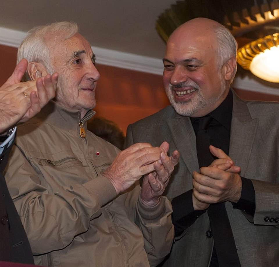 Шарль Азнавур и Константин Орбелян. 28 мая 2017 года в Ереване на премьере балета La Boheme на музыку Азнавура