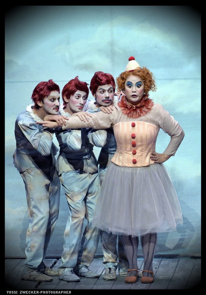 Хорошо, добротно и красочно звучит хор (хормейстер Асаф Бенраф). И артисты хора увлеченно и убедительно играют роль кукольного народца.  Оркестр, этот уникальный, изумляющий инструмент, который имеет  свойство звучать по-разному, строиться по-разному  в руках разных дирижеров, разных музыкальных Гауди и Корбюзье. Достижения оркестра напрямую связаны со многими условиями: уровнем дирижера, его харизмой и умением себя выразить в звучании всех групп оркестра, количеством репетиций, владением данным музыкальным стилем, пониманием его…  Даниэле Каллегари, на мой субъективный взгляд и слух, особого результата с симфоническим оркестром Ришон ле-Циона не добивается. Оркестр звучит сухо, патетично, однообразно,  в разрез с тем, что происходит на сцене.  Этот коллектив, мною любимый, наделенный умением расти и ошеломлять, перерождаться, трактовать некоторые произведения так, как в нашей стране ни один другой  не трактует, странно гаснет с маэстро Каллегари.  Хотя – чтобы это осознать и зафиксировать – мне пришлось послушать его в этой опере не один раз…