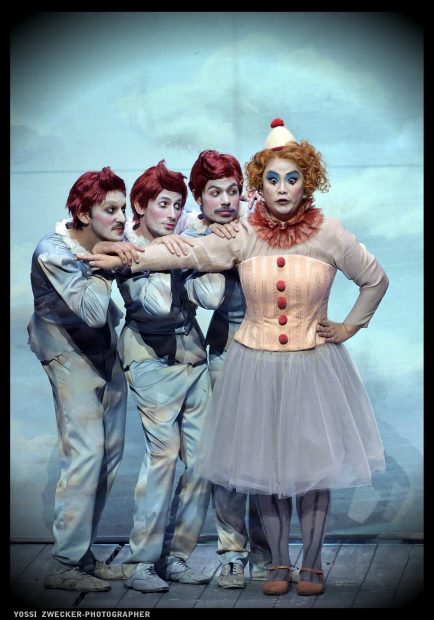 Израильская мега-звезда¸ режиссер, хореограф, дизайнер, известная выдумщица и фантазерка Инбаль Пинто придумала своих «Паяцев», и мы их увидели сразу после пролога со словами поддержки Украине, которая переживает трагичнейший период своей истории.
