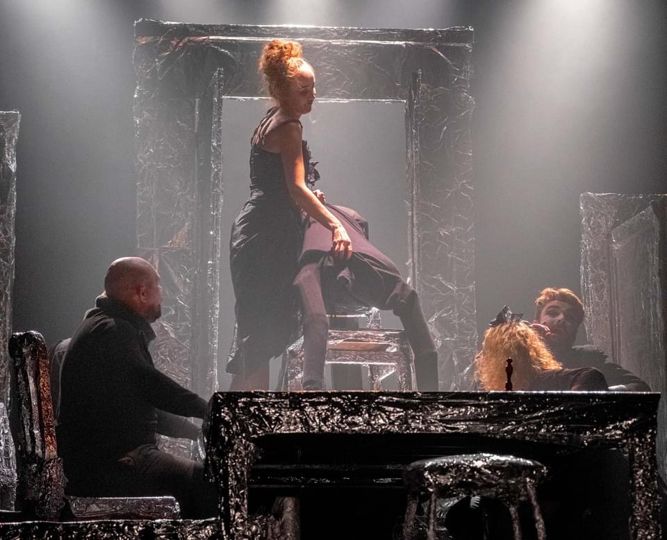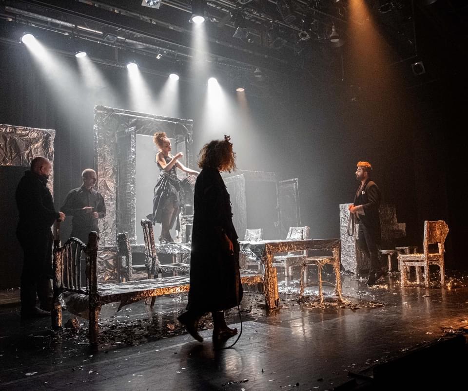 «АбсурДрама» – так написано в афише. Гоголь зазвучал, заплясал на иврите. Миша Кайт написал пьесу по гоголевскому материалу. Рут Левин и Лев Лейб Левин перевели на пластичный, ритмичный иврит. Музыка из мировой плавильной печи (тут и Балканы с Бреговичем, и что-то итальянское, и долгое, бесконечное звяканье рояля – как на сеансе психотерапии) придает то бархатистый, то безудержно-танцевальный, то холодный-мглистый, то жаркий-взрывной тембр, звук происходящему (автор и редактор – Алла Данциг). Сценография Жени Шехтер – серебряное море¸ океан фольги, которая ломается, облезает при неловком движении. Эта искусственная, фальшивая обертка очень хочет походить на роскошь, на крутое завидное богатство. И ничего не выходит – в финале фольга валяется, смятая, жалкая, изорванная. Простому человеку надо добыть денег. Ситуация понятная. Перед поездкой-паломничеством за мертвыми душами, перед странным экспериментом, который предпринимает Чичиков, чтобы выжить и выстоять, нам показывают начало, увертюру. Отец Павлуши машет кнутом. Бьет этим кнутом, стегает – сына, свою никчемность, свою жизнь. Он урод, тупое бездумное существо. Сын словно весь свой путь будет его отрицать, побеждать. Преодолевать его в себе. И все, с кем ему придется сталкиваться, вся эта камарилья упырей, нелюдей, этих пляшущих, бездумных и жадных, встанут против него. Бюрократы. Путаники и казуисты… И Чичиков проиграет. Сюжет закольцуется, замкнется: гонители – мучители будут наказывать живого, нового человека. Предприимчивость, напор, молодая энергия уйдут в песок. На свалку. Душа его (пластическая, поэтичная метафора – в виде девушки, слепой и трогательной), которую он будет качать на руках, оплакивать, израненная и искалеченная, успокоится на его груди, на этой трагичной дороге-дыбе. Чичиков будто Зевс, восставший против отца, против глупости и пошлости, немного Дон Кихот, немного Чацкий. Немного Гамлет…Грешен ли он? Виновен ли в незаконных махинациях? Возможно, да? Но это как посмотреть. И уж гораздо меньше, чем весь дьявольский хоровод. Чем до боли знакомая карикатура –слепок. В спектакле море находок и эстетических, и психологических. И смысловых. Прекрасна картинка в финале: лучи слабого, болезненного солнца пронизывают и церковный неф, и тюремную камеру. Виртуозы, мастера светотени и художественного осмысления света на театре, Миша Чернявский и Инна Малкин выверили каждый луч, каждую краску. Все значимо и вдохновенно. Прекрасен, органичен, победно пластичен, легок и глубок Чичиков (Лев Лейб Левин). Он истинное украшение концепции, живой аргумент в пользу значимости спектакля.