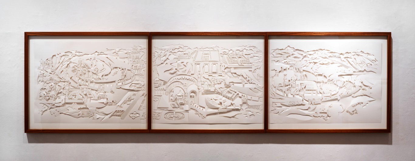 Пелег Дишон-Шитафон. Триптих “Старо-новый Вавилон”. Из коллекции художницы. Вырезка из бумаги. Выставка “Минегед”.