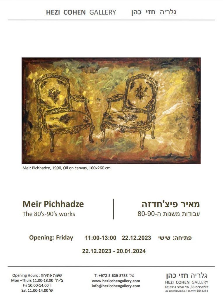 МЕИР ПИЧХАДЗЕ. РАБОТЫ 1980-90-Х ГОДОВ. Экспозиция из наследия художника в тель-авивской галерее Хези Коэна откроется в пятницу, 22 декабря 2023 года (с 11:00 до 13.00). Выставка продлится до 20 января 2024 года.