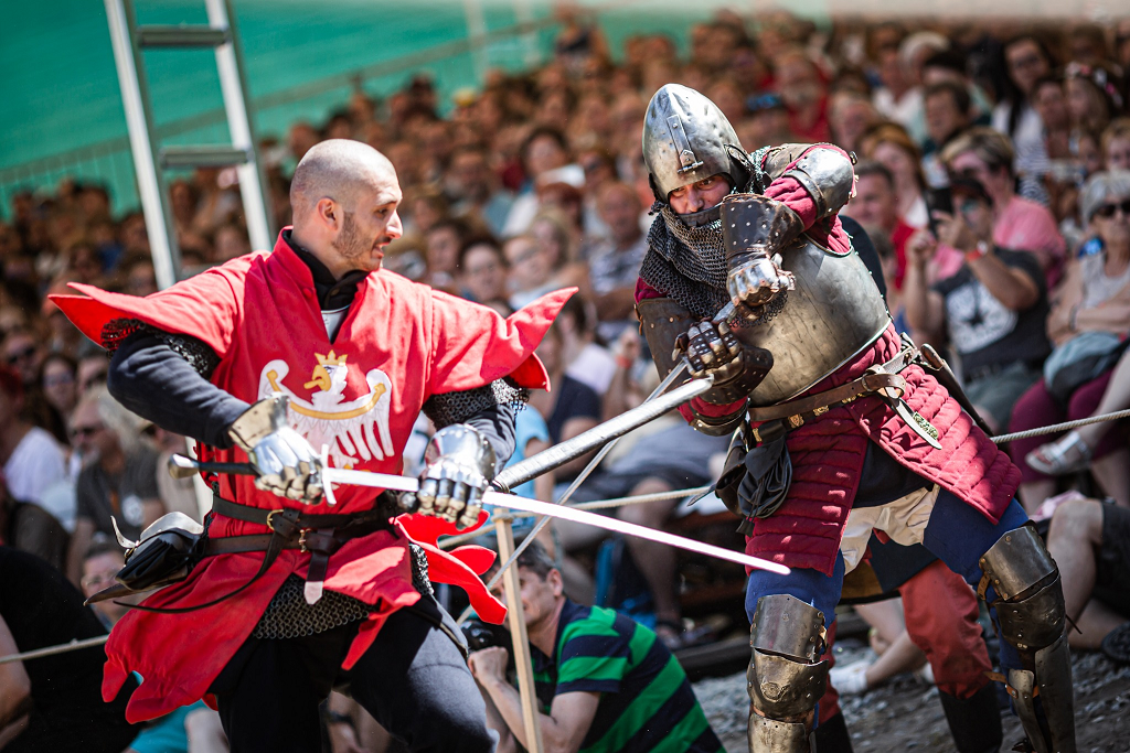 Первое – Историческое Шоу Венгерских Рыцарей действующего Ордена «Святого Георга», основанного еще в 14-м веке и восстановленного в 1990-м году группой энтузиастов, историков, археологов и реконструкторов. На сегодняшний день Орден насчитывает около 500 братьев, ставящих акцент в своей деятельности на популяризации рыцарского исторического наследия. С показательными выступлениями воины объездили всю Европу, демонстрируя искусство владения оружием .