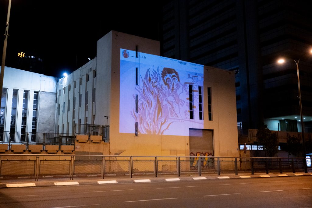 Первый показ #ArtistsStandWithIsrael прошел 17.10 в 21:00 в Тель Авиве, на стене SVIVA (Derech Menachem Begin 30).