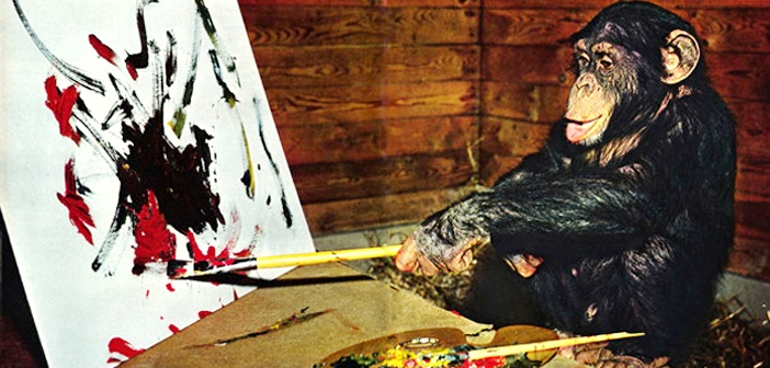 Справедливости ради отметим, что без всякой мистификации работы обезьян иногда привлекают внимание. В 1957 году в лондонском Институте современного искусства была организована выставка картин, написанных шимпанзе. В 2005 году с молотка лондонского торгового дома Бонхамс (Bonhams – аукционный дом совсем не из последних) ушли за $26 тыс. три абстрактных картины одной из выставлявшихся неоднократно шимпанзе по кличке Конго. Купивший картины коллекционер из Лос-Анджелеса Говард Хонг не без юмора рассказал: “Многие говорили мне, что гораздо дешевле купить живого шимпанзе, посадить его в комнату и дать ему кисти и краски. Но когда я увидел работы Конго, они действительно поразили меня. По стилю они походят на Кандинского. Единственное, что меня расстроило, так это то, что шимпанзе никогда не подписывал свои работы”.