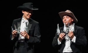 – Ну конечно, мы следим за тем, что происходит на современной поп-сцене. И по возможности черпаем из нее вдохновение. Наш номер, где наш Михаил поет как Майкл Джексон – своего рода дань уважения этому великому поп-исполнителю. Мы считаем его одним из самых лучших. Да, в наших номерах встречаются много знаменитых популярных мелодий. Однако, должен честно вам сказать, что за вдохновением мы скорее обратимся к музыке Beatles, чем к Jay Z.