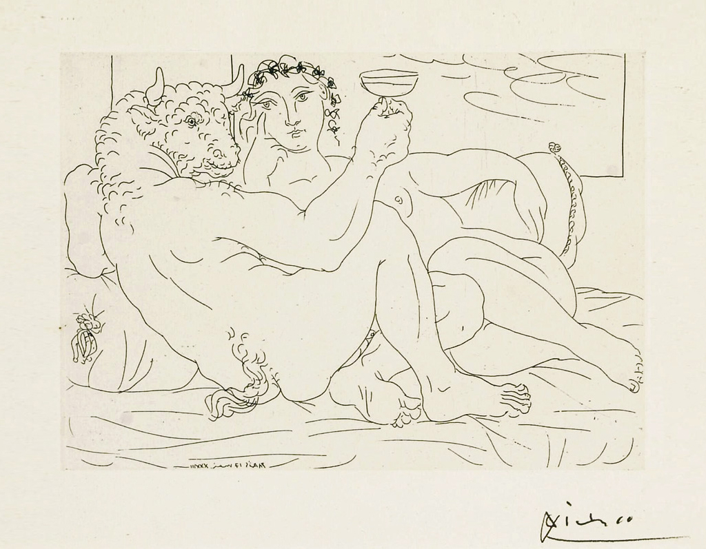 – Это зависит от уровня подготовки мастера и ловкости владения штихелем или иглой для гравирования. Пикассо делал офорты практически в один прием. Он применял и травление, но большей частью использовал линейный рисунок. У него были очень сильные – в прямом смысле сильные – руки. И медная пластина его не пугала, а была для него как бумага, а иглой и штихелем он владел с раскованностью ребенка, как карандашом. Пикассо был настолько верен и точен в движениях руки, что практически ничего не шло в корзину. Он ничего не исправлял, одним движением резца или иглы создавал завершенный рисунок. И если потом травил, что тоже бывало, то это травление только углубляло линию. Сам процесс гравировки – травление, печать, нанесение краски – занимал какое-то время, но Пикассо выплескивал свое отношение и свое сиюминутное настроение в один прием. Больше времени занимал процесс печати, но он требует от художника скорее мастерства и ловкости, чем чувств и эмоций. Это уже дело навыка в ремесле печатника. И, кстати, не всегда сам Пикассо занимался печатью оттисков.