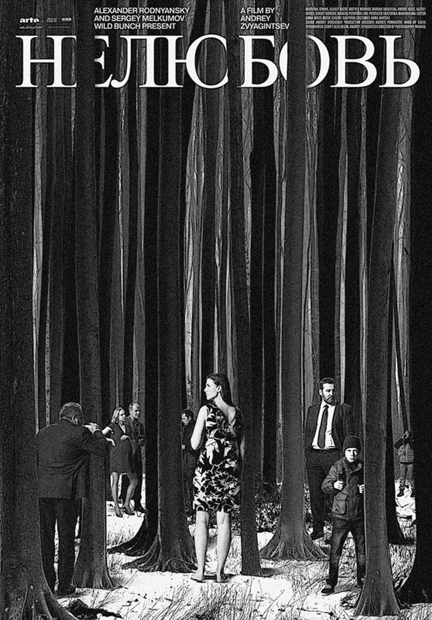 Это не история разрушенного брака двух представителей офисного планктона, не любящих своего ребенка – это картина о судьбе родины. Так же как «Левиафан» на самом деле – не про имущественный конфликт, фильм «Нелюбовь» – про Россию, которой наплевать на своих детей. А гигантский скелет кита, ставшего символом страны в предыдущей работе мастера, в этой заменяет пропавший мальчик, «бегунок», которого так и не удается найти.