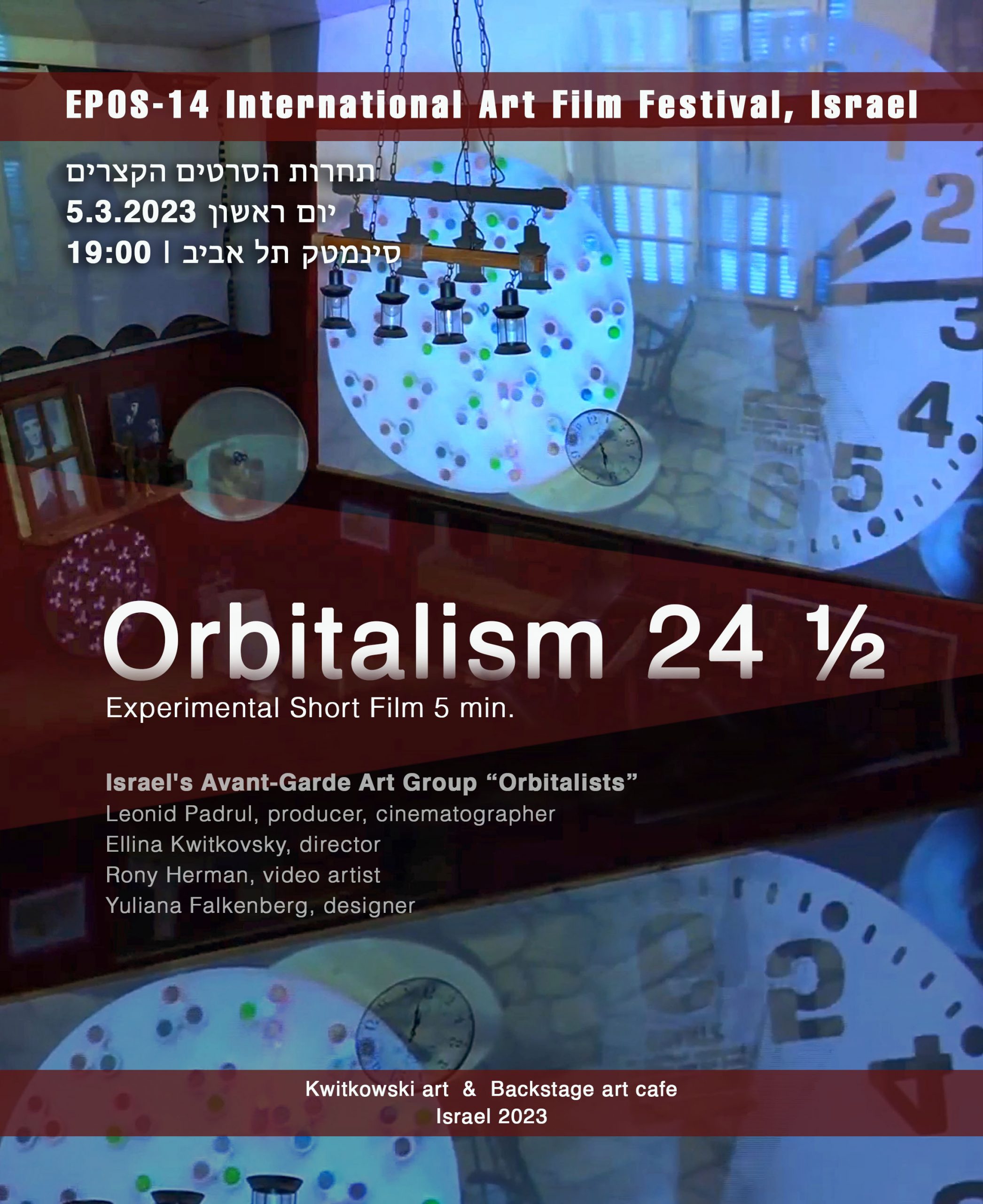 «Orbitalism 24 ½» – новый экспериментальный короткометражный фильм режиссера Эллины Квитковской, созданный в 2022 году авангардной группой экспериментального искусства «Орбиталисты», будет показан в конкурсной программе на «ЭПОС-14» – Международном фестивале фильмов о культуре и искусстве 5 марта, в 19:00 в “Синематеке” Тель-Авива.