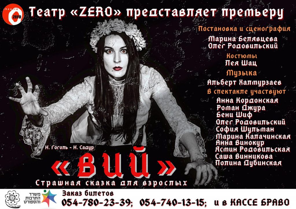 В конце сентября в Арт-подвале в Кирьят-Оно, а затем в течение октября и ноября 2024 года, театр ZERO представит премьеру спектакля «Вий» с участием 8 актеров по мотивам одноименной повести Николая Гоголя и пьесы «Панночка» Нины Садур.