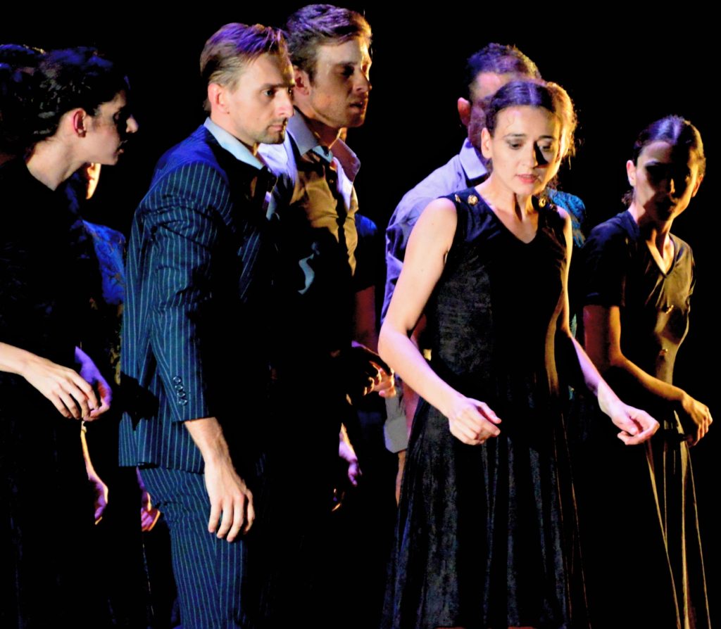 Это камерная новелла о движениях души и смятении тела под кодом «Пиаф». Пиаф здесь – градус, вектор, кардиограмма¸сумятица чувств. Хореограф – итальянский новатор Мауро Астольфи, сочетающий свободу составления танцевального текста сдразнящей, пряной, масштабной тягой к красоте. Язык – необычный. Так сегодня в Израиле еще не танцевали. В перфомансе с участием людей и очеловеченных предметов бьется торжественная сарабанда, длится сосредоточенное шествие мысли и чувства. В этой пластической новелле, где Пиаф и есть – и ее нет, музыка рвется вверх. Тела танцующих описывают траекторию – от низкого, на полу кипящего отрезка касаний до парения в небе. Маленькая, голосистая, но очень «не Пиаф» девочка в самом начале поет песню. Под аккордеон. Звучит голос, похожий на знакомый и любимый голос. Но – не он. И мы понимаем, насколько это другой голос. Насколько нельзя, невозможно повторить уникальность той, единственной Пиаф. Всемирной души. Это не значит, что девочка поет плохо. Она милая, музыкальная. Девочка – к слову, она лауреатка каких-то конкурсов или шоу – хороша, но она иная, совершенно в другом измерении существующая. В другом стиле и настроении. Ее не обжигала боль, не мучила тяжесть земного пути, не испепеляла любовь… Она ребенок. А Пиаф, полно, да было ли у воробышка-Эдит детство? Не родилась ли она сразу мудрой и надрывной… Девочка – не Пиаф. Как не Пиаф танцовщицы, те, что участвуют в спектакле.