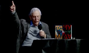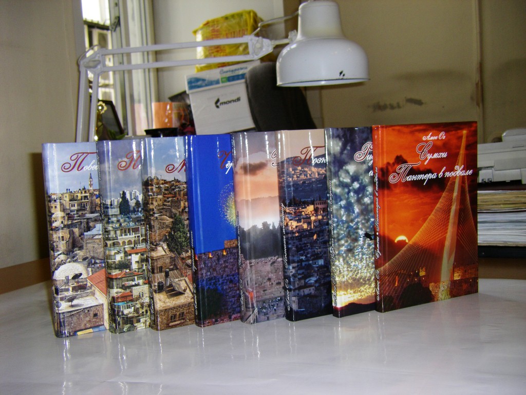 В пятницу, 1-го апреля,   в Университете Тель-Авива состоялась встреча Амоса Оза и его переводчика на русский язык  Виктора Радуцкого по случаю выхода в свет 8-томника  произведений Амоса Оза. Встреча проходила в рамках Дней русского языка и культуры. 8-томник  романов Амоса Оза  в Москве вышел в издательстве “2Р”.  Весь тираж предназначен для Еврейских культурных центров в России с странах СНГ. Распределяется и Посольством  и Библиотекой Иностранной литературы в Москве Впервые книга Амоса Оза издаются с подробными комментариями (откуда  русскоязычному читателю знать про ПАЛМАХ, Гистадрут, Декларацию Бальфура, Маймонида и прочее),  с фотографиями  Амоса, с его эссе и публицистикой, а также с  оригинальным дизайном издания. Все обложки – фотоработы прекрасного иерусалимского фотографа Михаила Левита.