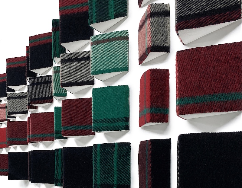 Структура повторяющихся рядов и их единый ритм отзываются фасадами бруталистской архитектуры Восточной Европы – ландшафтом детства художницы. В этой структуре можно увидеть также отзвук мемориальных плит павшим, на которых выгравированы имена и обозначения, расположенные в бесконечных рядах. Повторяемость клеток напоминает и сетку календаря – визуальный дневник, отмечающий цикличность жизни. Цвета – зелёный и красный – несут двойную память: цвета Рождества оттуда и цвета беретов и воинских знаков доблести отсюда.