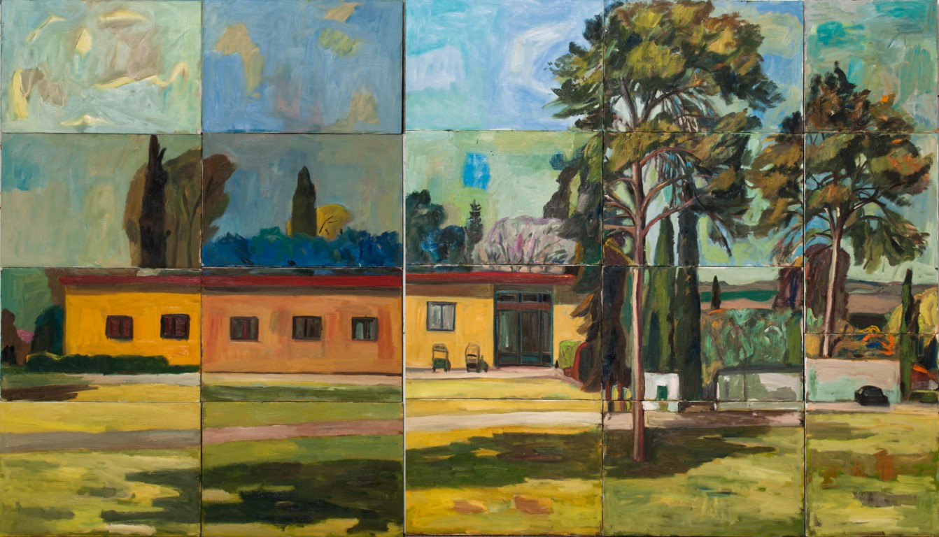 Двор кибуца как сценическое пространство. Михаэль Ковнер ранее был более известен как израильский пейзажист – он писал пейзажи природы и города, создал прекрасную серию зарисовок Нью-Йорка, а потом не менее прекрасную, но совсем в иных красках, серию кибуцных зарисовок. Его нью-йоркские городские пейзажи, виды через окна жилого дома или автомобиля – это больше наблюдения. А его работы из серии «Кибуцный двор» – это скорее, ощущения, насыщенная живопись, движение теней, меняющиеся пропорции, мерцание света, дрожание пространства, переживание деревьев и о деревьях. Деревья растут повсюду, но в кибуцных дворах они воспринимаются едва ли не как члены семьи, как что-то, чему можно довериться. Двор кибуца стал для Михаэля Ковнера еще одним личным путешествием, начавшемся в 2012 году и закончившемся в 2017 году. Эти дворы, их живописная древесная паутина везде похожи. По ним приятно гулять, в них приятно сидеть, ощущая себя дома, под защитой. Михаэль Ковнер работал над этой серий в течение пяти лет в 8 кибуцах – Нахшон, Двир, Ревадим, Кирьят Анавим, его родной кибуц Эйн ха-Хореш, Рухама, Кфар-Рупин, Галь-Он – Бейт-Нир.