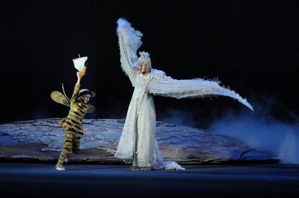 О партитуре «Салтана» Римский-Корсаков говорил, что она – «руководство к фокусам», имея в виду изобретательность оркестровки. Отталкиваясь от природы этой партитуры, авторы спектакля в МАМТе создали спектакль-фокус, спектакль-игру. Здесь «играют» и «поют» людей и животных, море и деревья, птиц и детей.