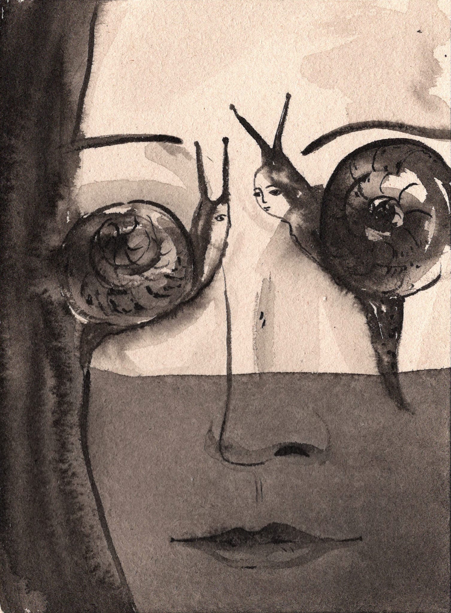 В тель-авивской галерее Marfedor Art Corner открылась удивительно поэтичная камерная выставка авторской графики Анны Бессоновой. Её название — HILAZON — отсылает к талмудическому образу морской улитки, существа, способного к превращениям. Поэтому неудивительно, что на рисунках художницы улитки обретают человеческие лица. Они не выглядят фантастическими — скорее странно знакомыми, будто мы просто не привыкли видеть себя в таком темпе.