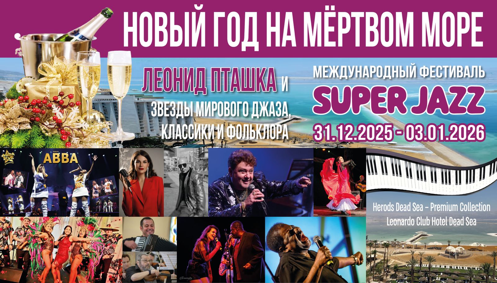 В Израиле музыкальная жизнь не замирает ни зимой, ни в праздничные дни. У Мертвого моря, куда многие приезжают в конце года отдохнуть и провести несколько тихих дней в стороне от городского ритма, давно сформировалась своя традиция – встречать Новый год не только за столами, но и на концертах, которые собирают очень разную публику. Фестиваль Super Jazz, созданный Леонидом Пташкой, стал одним из таких регулярных событий. В этом году он снова пройдёт с 31 декабря 2025 по 3 января 2026 года в отелях Herods Dead Sea и Leonardo Club Dead Sea.
