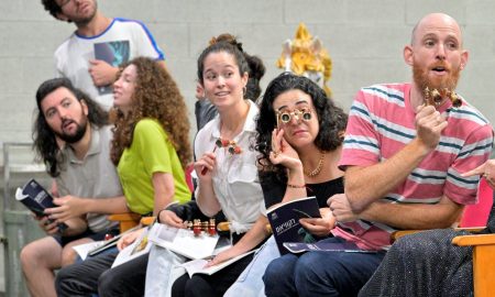 “Ханох Левин – Опера”. Момент репетиции. Фото – © Йоси Цвекер 8 октября 2023 года, после долгих предварительных репетиций, участники постановки «Ханох...