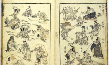 Верхняя иллюстрация – разворот Манга Хокусая с рисунками героев и мифологических существа из китайской и японской древности Лекция японоведа Евгения Штейнера о...