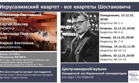 В дни Хануки в Израильской консерватории «Штрикер» в Тель-Авиве пройдет большой праздник для всех любителей музыки. Центр камерной музыки при Израильской консерватории...