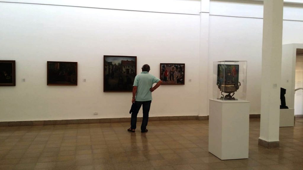 И есть таблички, заставляющие сердце на секунду остановиться: родился тогда-то в Польше, на Украине, в Белоруссии –погиб в 1940-х годах в лагере смерти. И есть картины Левитана, Фалька, гравюры Шагала. И истории о том, как они оказались в музее. И история Хаима Атара (Хаима Аптекаря, родившегося на Украине и 20-летним юношей с третьей алией приехавшего основывать кибуц Эйн-Харод), с ателье которого начался музей. На открытии выступал его внук, а потом показали короткий документальный фильм: в нём о Хаиме Атаре вспоминали глубокие старики – те дети, которые были его моделям в 1930-е годы. Их портреты висят в одном из залов музея – и в них чувствуется влияние Хаима Сутина. Атар и Сутин приятельствовали в 30-е годы в Париже и не случайно юбилейный год в музее завершится осенью 2019 года выставкой Сутина.