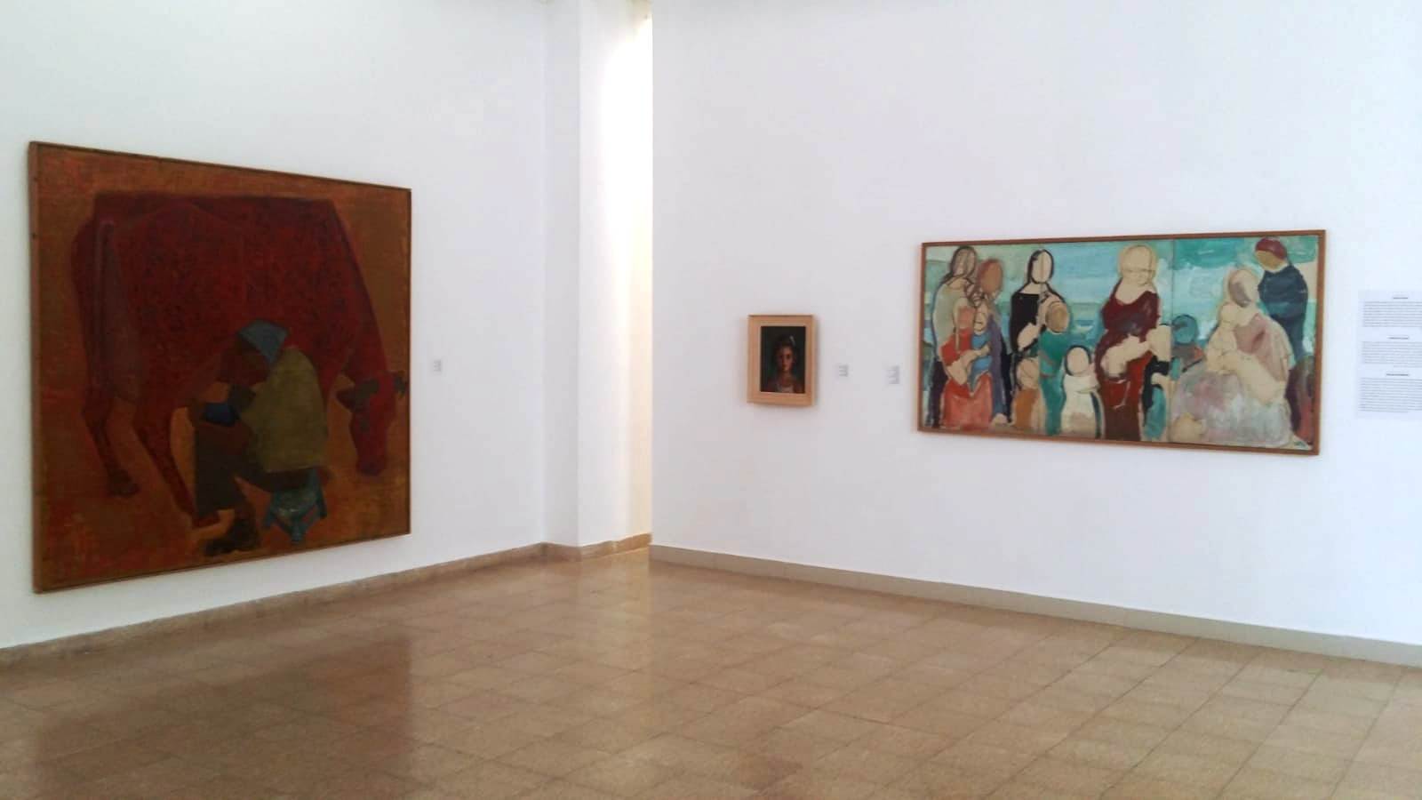Cегодня утром прошло открытие выставки «Сокровища музея – 80 лет» в Музее «Мишкан ле-Омануёт» в кибуце Эйн-Харод. Гостей и посетителей было полно, в залах и галереях шумно, но я приехала за час и осталась еще на час после того, как все разошлись, и потому на моих фотографиях – довольно пусто. Так что удалось посмотреть экспозицию несколько раз: еще в процессе ее подготовки месяц назад, сегодня утром в пустых залах, затем вместе со всеми и еще раз всё обойти, когда в музее вновь стало тихо, хотя выставка в нем такая, что многолюдно должно быть все время. И посмотреть выставку надо будет еще не раз – перед каждой картиной хочется застыть, каждую скульптуру обойти. И не только потому, что все они хороши и прекрасны, а потому что за каждой картиной и каждой скульптурой скрыт ее фон – судьба художника, его рассказ, его жизнь. Небольшая часть работ были видены ранее на сборных выставках в других музеях, имена многих художников знакомы, но значительная часть экспозиции представлена публике пусть не впервые, но не выставлялась многие десятки лет, хранясь в архивах и запасниках. Имена-вехи израильского искусства (Ардон, Бергнер, Купферман, Ори Рейзман, Нафтали Безем – это мои любимцы, а все перечислены в каталоге) перемежаются с менее знакомыми, но все они – и имена и работы – поразительны тем, что составляют историю искусства еврейского и израильского.