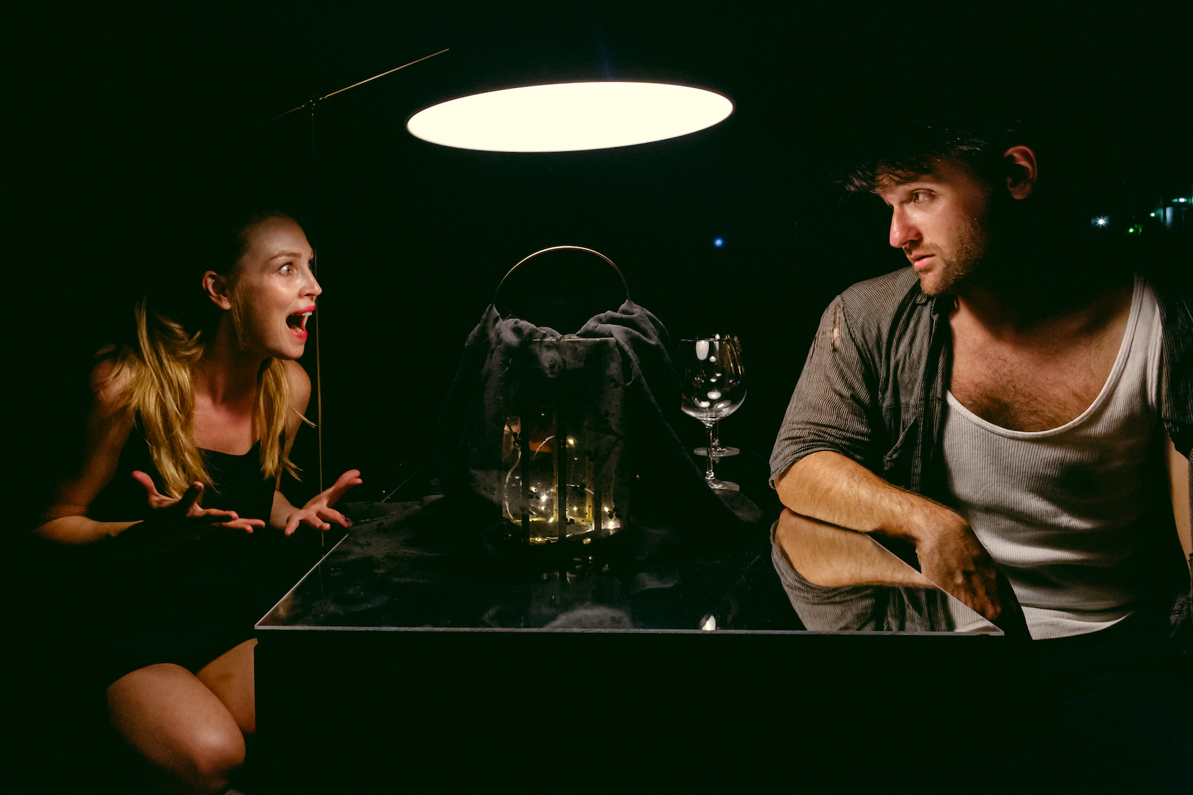 Сцена из спектакля «История медведей панда, рассказанная саксофонистом, у которого есть подружка во Франкфурте». Фото – © Марк Цо