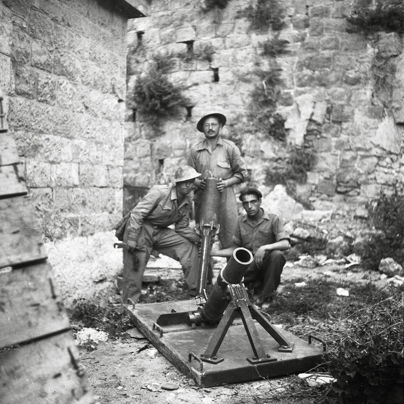 ורנר בראון – לוחמים ליד מרגמת דוידקה, ירושלים – באדיבות ארכיון התמונות ביד בן צבי