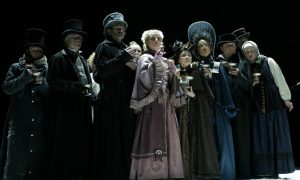 На верхнем фото: Анатоль – Владимир Логвинов, Элен – Анна Антонова, Друбецкая – Марина Есипенко, Карагина – Ирина Дымченко. Фото – © Александра Торгушникова
