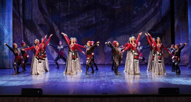 На сцене – балет, в котором нет границ между народным искусством и театром, между традицией и дерзостью, между акробатикой и поэзией. Танец здесь – не просто движение. Это гордость, это ритм земли, это отпечаток истории, рассказанный языком тела. Каждый танец – как отдельный эпизод эпоса, рассказанный языком тела: благородная кахетинская сюита, огненная лезгинка, сцены сражений и любви. 30 виртуозных танцоров исполняют головокружительные вращения, стремительные прыжки, сложнейшие трюки и акробатические элементы, двигаются в совершенном синхроне, словно одно целое, – и всё это – в сопровождении живой музыки и более 150 колоритных костюмов.