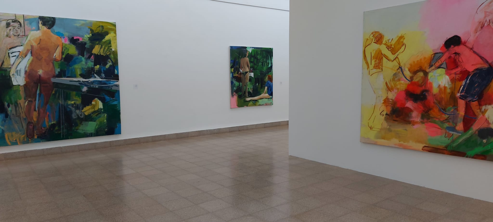 Творческое наследие… Наследие мастеров мировой живописи и израильской. Йонатан Голд, работам которого отведены два главных зала музея, подчеркивает, что его картины – это постоянный диалог с художниками. Он также родился в кибуце, его отец был художником и они вместе оформляли праздники в кибуце в стиле социалистического реализма. К тому же художник в кибуце – это почти маляр. Наложите на такую предтечу десятилетие обучения в Европе и получите смесь импрессионизма, «Новых горизонтов», живописи фигуративной и абстрактной, и краски, пигментов, цветов. Йонатан Голд смешивает их сам – как маляр в ведре, стряхивая кисть… А на дне ведра, под слоем красок – темы, детские воспоминания, старые идеи, новые веяния, случайные сцены. Сочетание личного и общественного в серии работ «Приемная комиссия», где беззащитные одиночки обнажены перед равнодушной стаей облеченных властью. «Оттенки», «Купальщицы», «Группа» – во всех сериях своих работ Йонатан Голд выходит за общепринятые рамки, развенчивает окутанные ностальгией мифы и смотрит на действительность критическим взглядом.