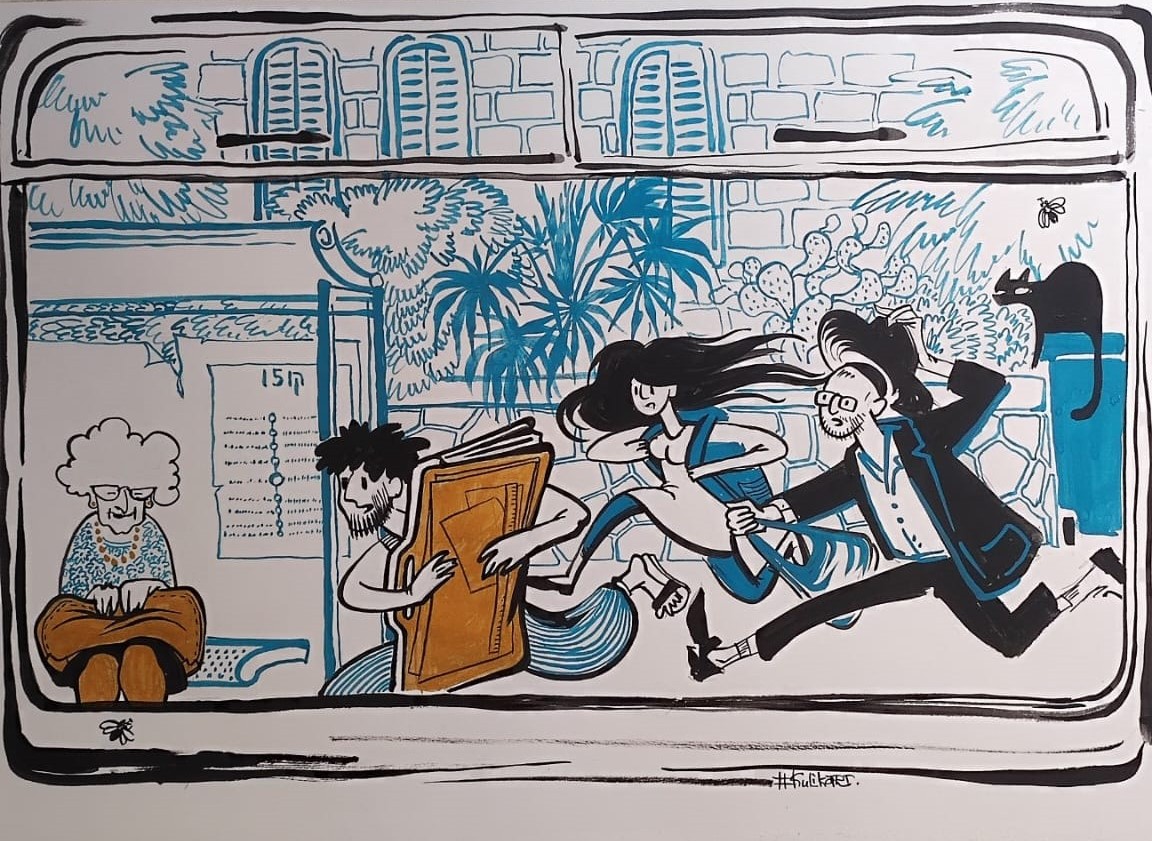 Согласно одной из теорий современного искусства, каждый объект, в том числе городской, да и сам город, мы воспринимаем как текст, соответственно, считываем каждый своё. Сюрпризы нового климата, архитектурные наслоения, звучание восточных языков и напевов, смыслы праздников и дней скорби, шлейфы запахов, собственные дресс-коды, отголоски глобальной моды и локальной кулинарии. У каждого израильтянина свои персональные приоритеты, своя оптика, но у Иерусалима все без исключения отмечают особый климат/наречия/смыслы. Вслед за художниками мы кружимся по этим улочкам (Катя Ройз, Аня Дорфман), улыбаемся трамваю – вот же чудо, в самом деле (Наталья Куликова наслаждается жанром забавного комикса). Вдыхаем особый свет (Шмуэль Шелест), разглядываем кошек в жанровых сценах, читаем или слушаем легенды, листаем страницы. Формула «ты в Городе и Город в тебе» наполняется содержанием, и хочется только все это сберечь.