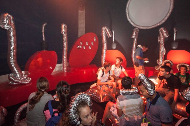 «Лес иллюзий – растительный мир»: настоящий лес, состоящий из широких труб, наполненных светом и звуком. На входе в лес посетителей ожидает головокружительное представление сочетающее движение, множество различных звуков, ощущений и растений.
