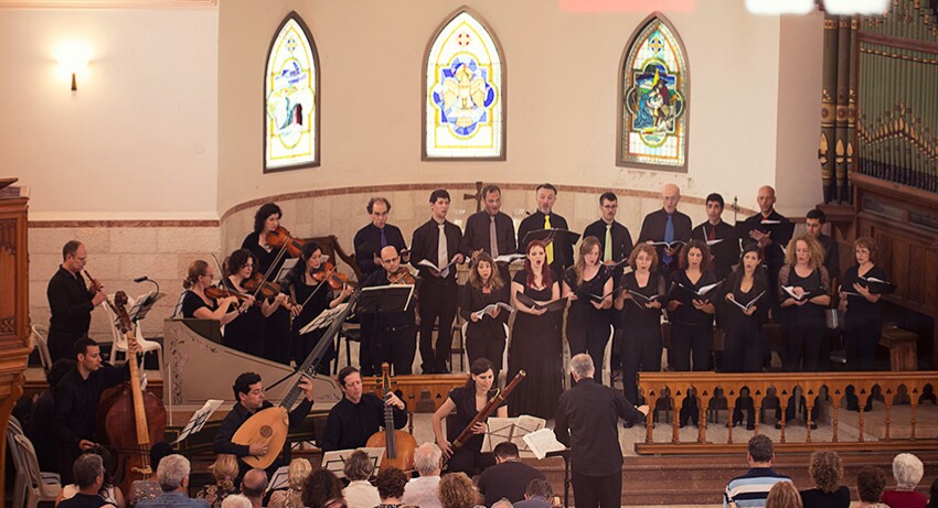 Израильский вокальный ансамбль в сопровождении ансамбля музыкальных инструментов эпохи барокко.