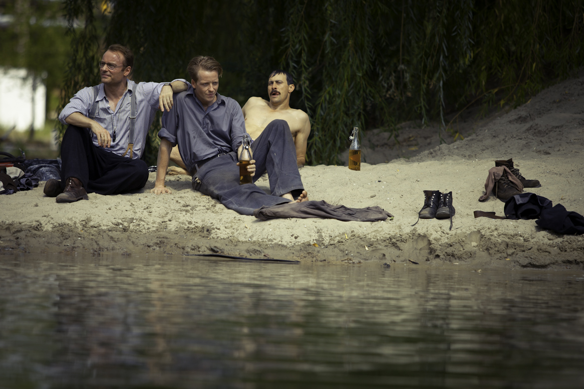 Не зря же Ханс и его «соучастник» Петр так похожи друг на друга – в одной из сцен фильма Петр даже пытается представить Ханса своим братом-близнецом – правда, безуспешно. А один из самых страшных моментов фильма – когда четверо немцев и русские ползут на поезде по бесконечным рельсам, и вдруг по параллельным рельсам их медленно обгоняет платформа, на которой они видят «себя» – людей, очень похожих на них. И один из немцев не выдерживает этого – он бежит туда, к другому поезду, но вместо своего двойника находит смерть. И в этом, а также в том, что немцы и русские не могут говорить друг с другом (только двое русских понимают немецкий язык – очкарик-топтун из НКВД и девушка, которая в результате поставит «точку» в этой истории), я вижу (хочу видеть) следование традиции европейского театра абсурда – разные скорости, разные языки, невозможность понять друг друга… что там еще? Удивительно, но, кроме «Сталкера» Тарковского и, естественно, наполненных шорохами, шепотами и криками фильмов Алексея Германа (куда же без них?), мне почему-то вспомнился еще и игровой дебют Марины Разбежкиной «Время жатвы» – совсем другой, про другое время (1950-е) и рассказанный другим языком фильм, но тоже о «зоне», из которой нет выхода, и об окружающем абсурде – противоречащей здравому смыслу реальности или, больше того, вообще об отсутствии здравого смысла, и снова не в социальном (не только в социальном), но в экзистенциальном смысле. Ну, и так далее.